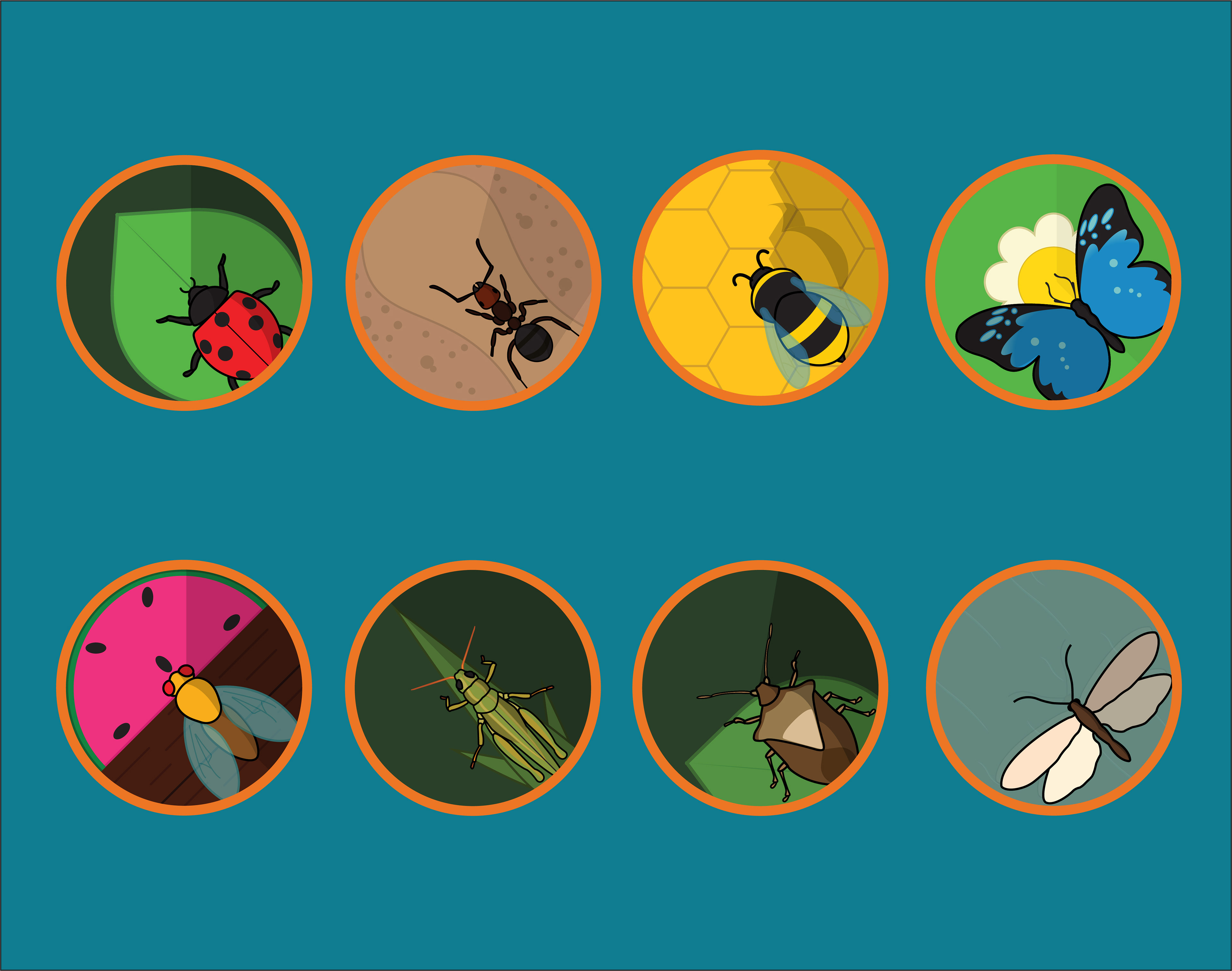 I was tasked with creating a symbol system for a concept museum exhibition for the Smithsonian Department of Entomology. Each symbol represents a different category of insects present in the exhibit. Along with the symbol system, a design was made for the gift shop packaging and event poster.